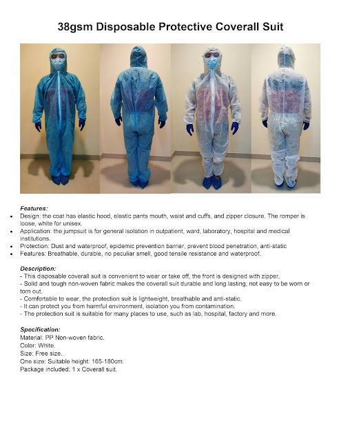 38gsm Disposable Protective Coverall Suit anti-bacteria for sale in Malaysia.