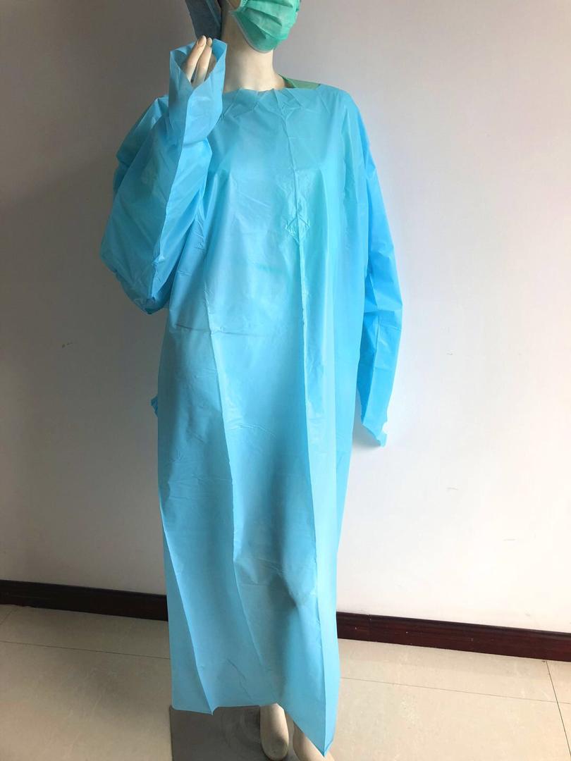 • CPE Isolation Gown 50g Is Designed For Vvirus Protection Of Front-Liner For Light To Heavy Duty Use.